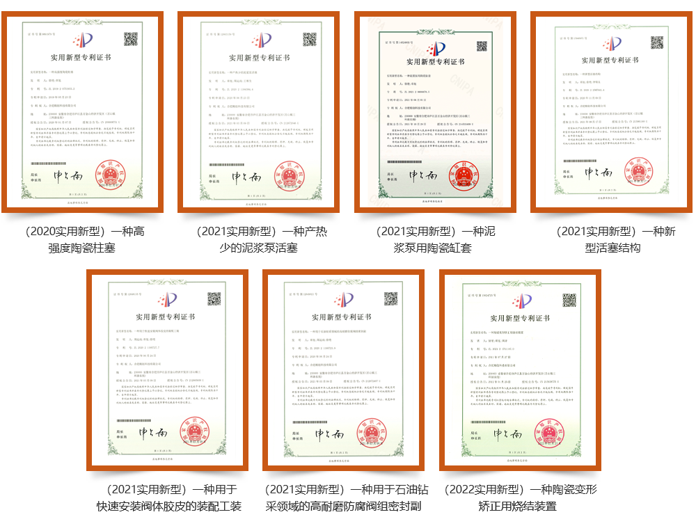 公司積極開展新材料、新技術(shù)、新產(chǎn)品的研發(fā)及應(yīng)用,取得了多項卓有成效的合作成果。近年來研發(fā)團隊已授權(quán)專利32項,其中發(fā)明專利5 項。陶瓷結(jié)構(gòu)件的兩個新產(chǎn)品研發(fā)分別獲得“中國創(chuàng)翼(2015)青年創(chuàng)業(yè)創(chuàng)新大賽”銀翼獎和“第四屆中國創(chuàng)新創(chuàng)業(yè)大賽”優(yōu)秀企業(yè)獎,陶瓷缸套產(chǎn)品被授予“安徽工業(yè)精品”,“高壓泵用高強度高耐磨陶瓷基關(guān)鍵結(jié)構(gòu)件研發(fā)及產(chǎn)業(yè)化”項目獲得省級科技進步三等獎。主持制定《柱塞泵用氧化物陶瓷柱塞》國家標(biāo)準(zhǔn)。